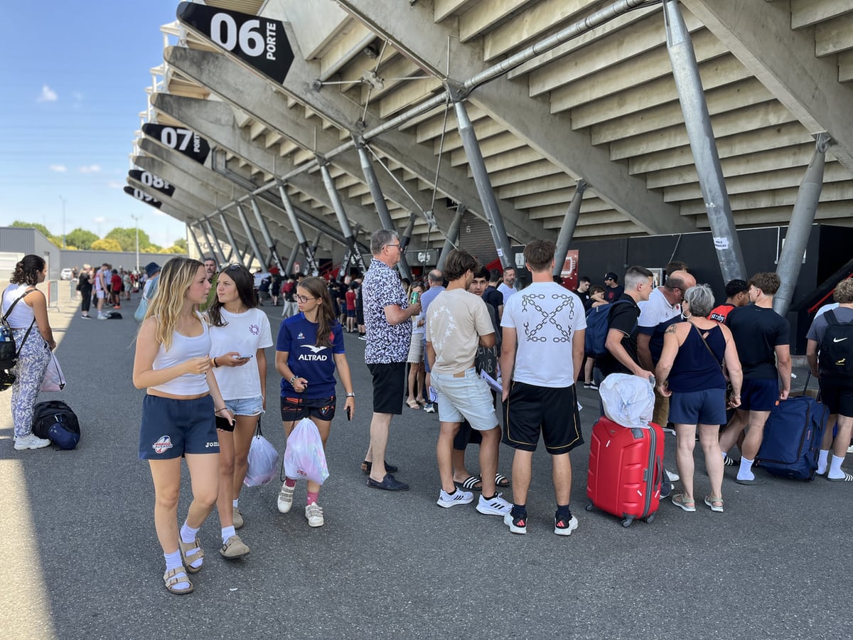集合場所のスタジアムのスタンド下には、各国から参加する選手が家族同伴なため、なかなかの人数が集まっています。