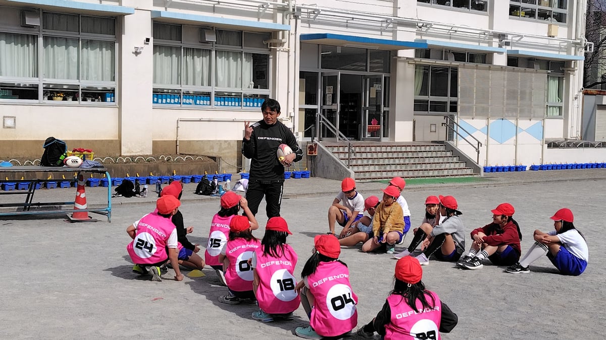 葛飾区立川端小学校でタグラグビーを基にしたやさしいゲームの授業を行いました。